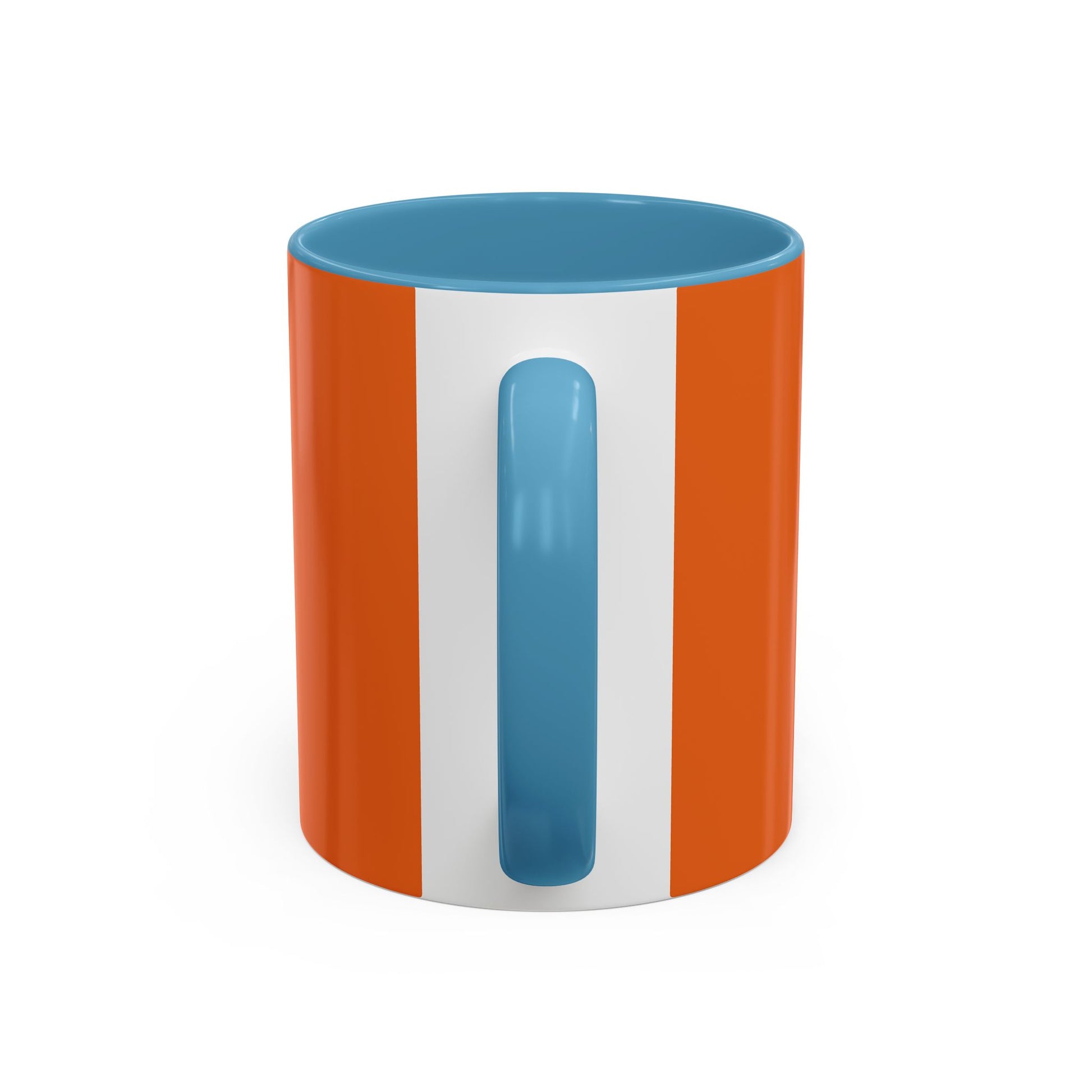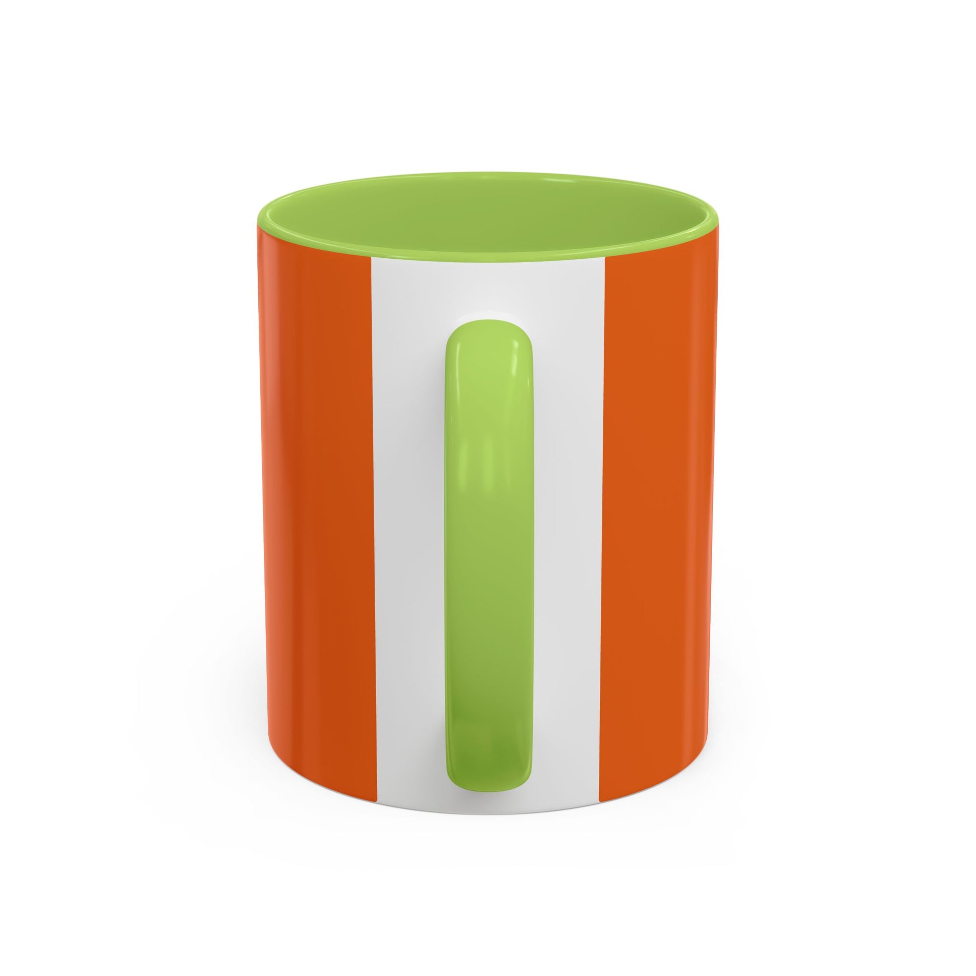 - White ceramic with colored interior and C-shaped handle