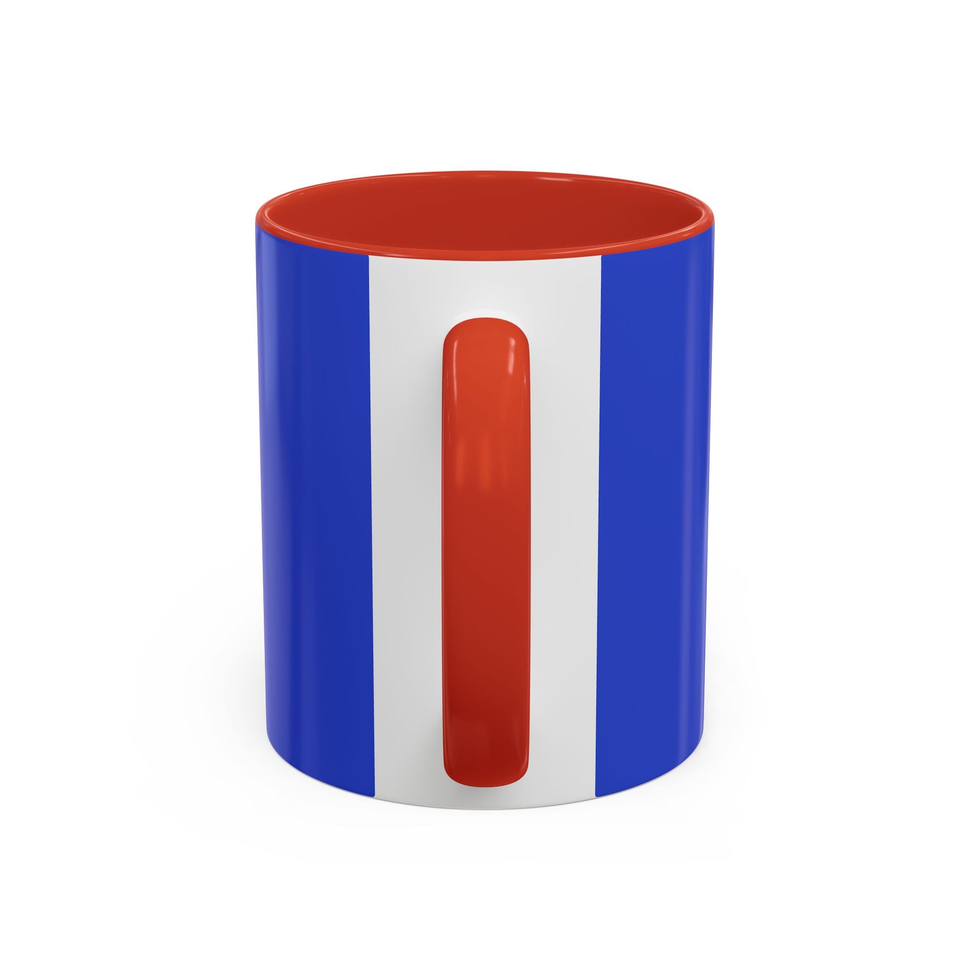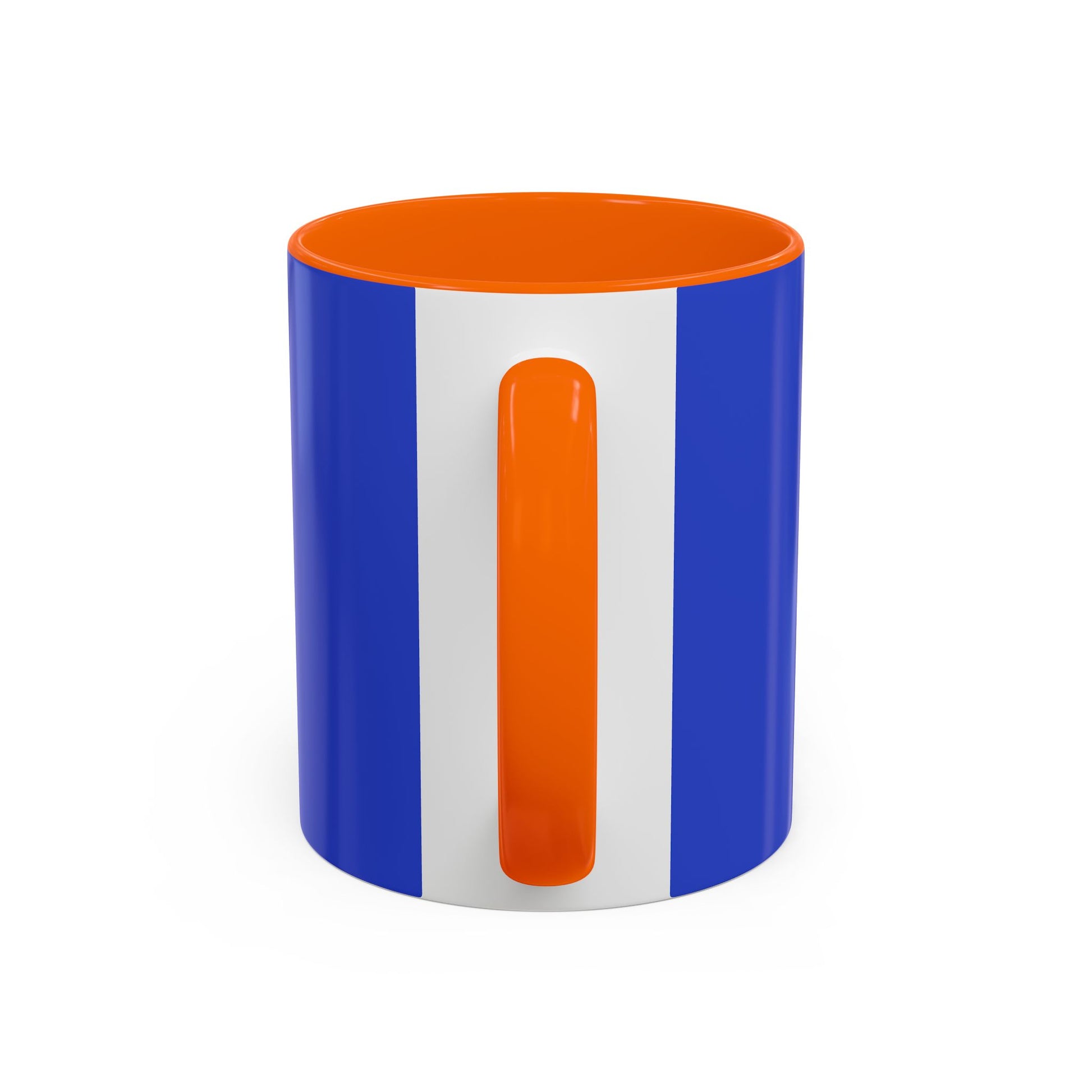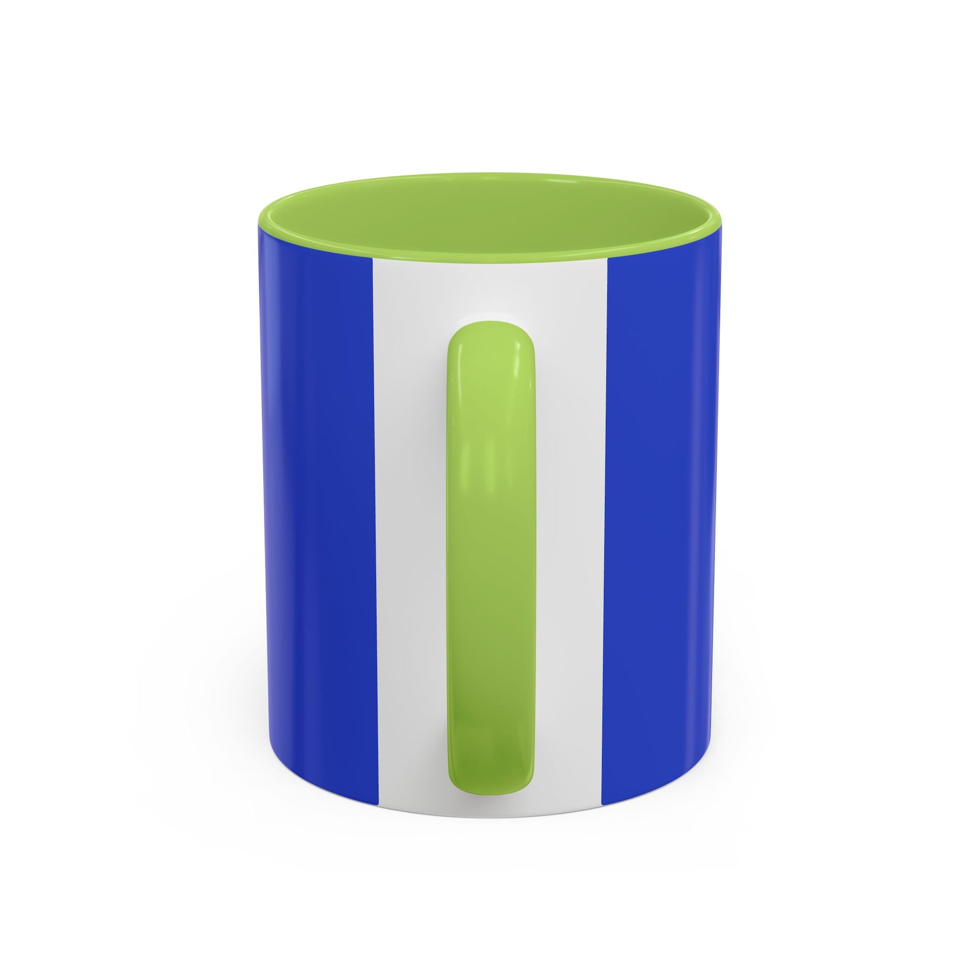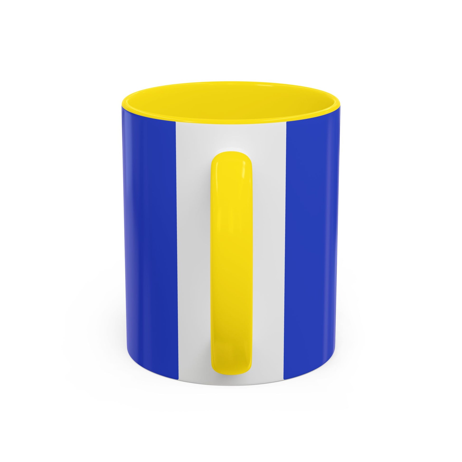 - White ceramic body with colored interior and handle for striking contrast